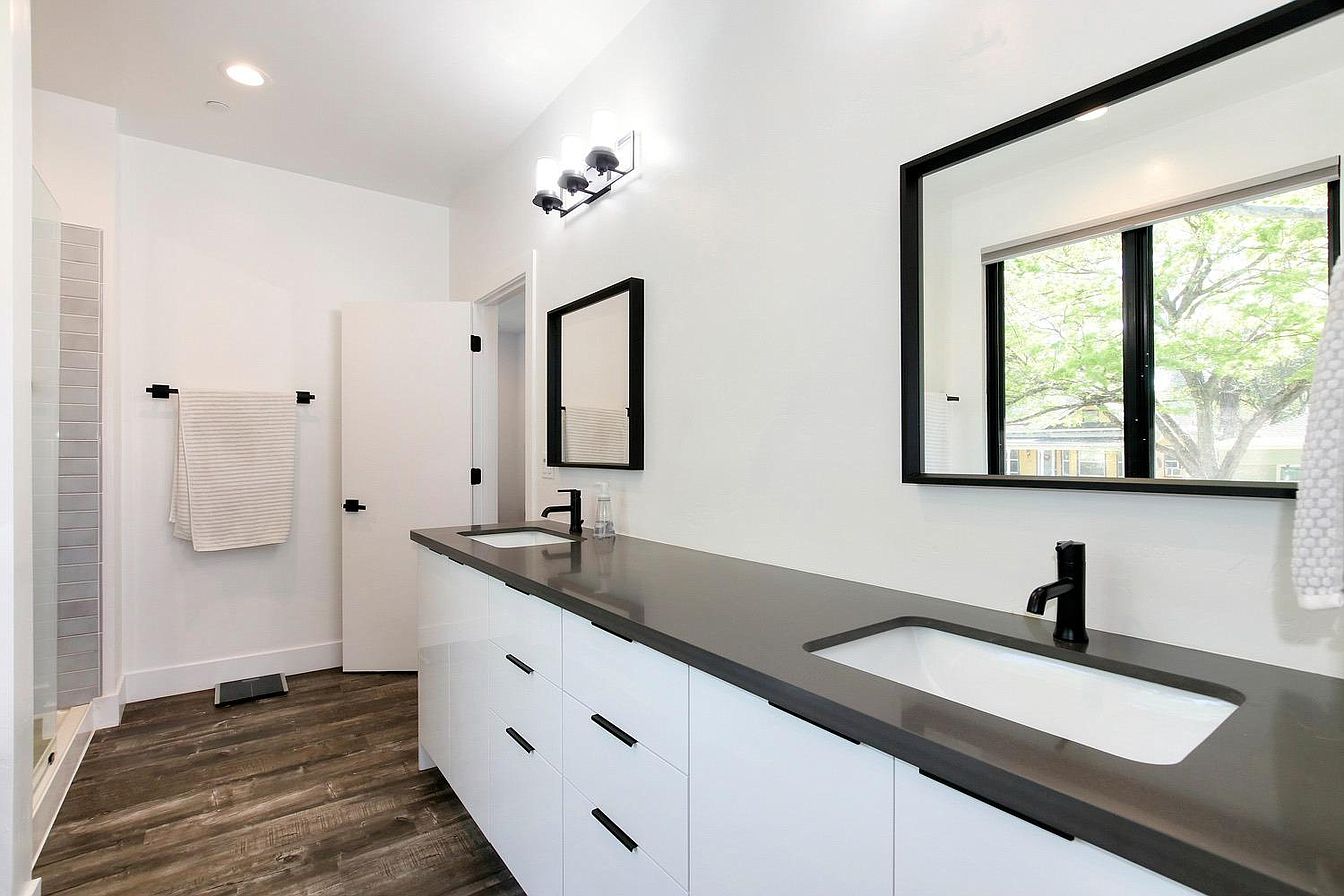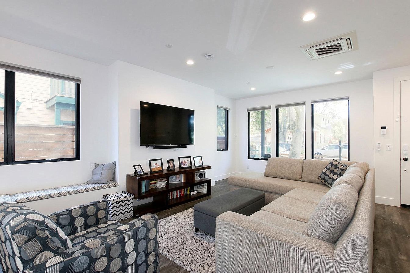 Contemporary, zero energy-ready home in desirable Curtis Park! This unique, tri-level 3 bed/2.5 bath home features a 8.48 kilowatt solar array & 2 Tesla power-walls, allowing the home to operate off-grid periodically. Large unobstructed casement windows let natural light into the modern open living & kitchen areas. All the bedrooms have retractable blackout curtains. The spacious kitchen is equipped with ample cabinets, bar seating, & an induction cooktop. On the second level, two sizable guest bedrooms share a bathroom. The beautiful master bedroom features an en-suite bathroom & roomy walk-in closet. At day's end, relax under shady, mature trees on the master balcony overlooking this cozy walkable neighborhood. An open third-level has potential for a home office or entertainment space. This home both attractive & eco-conscious truly a special find!