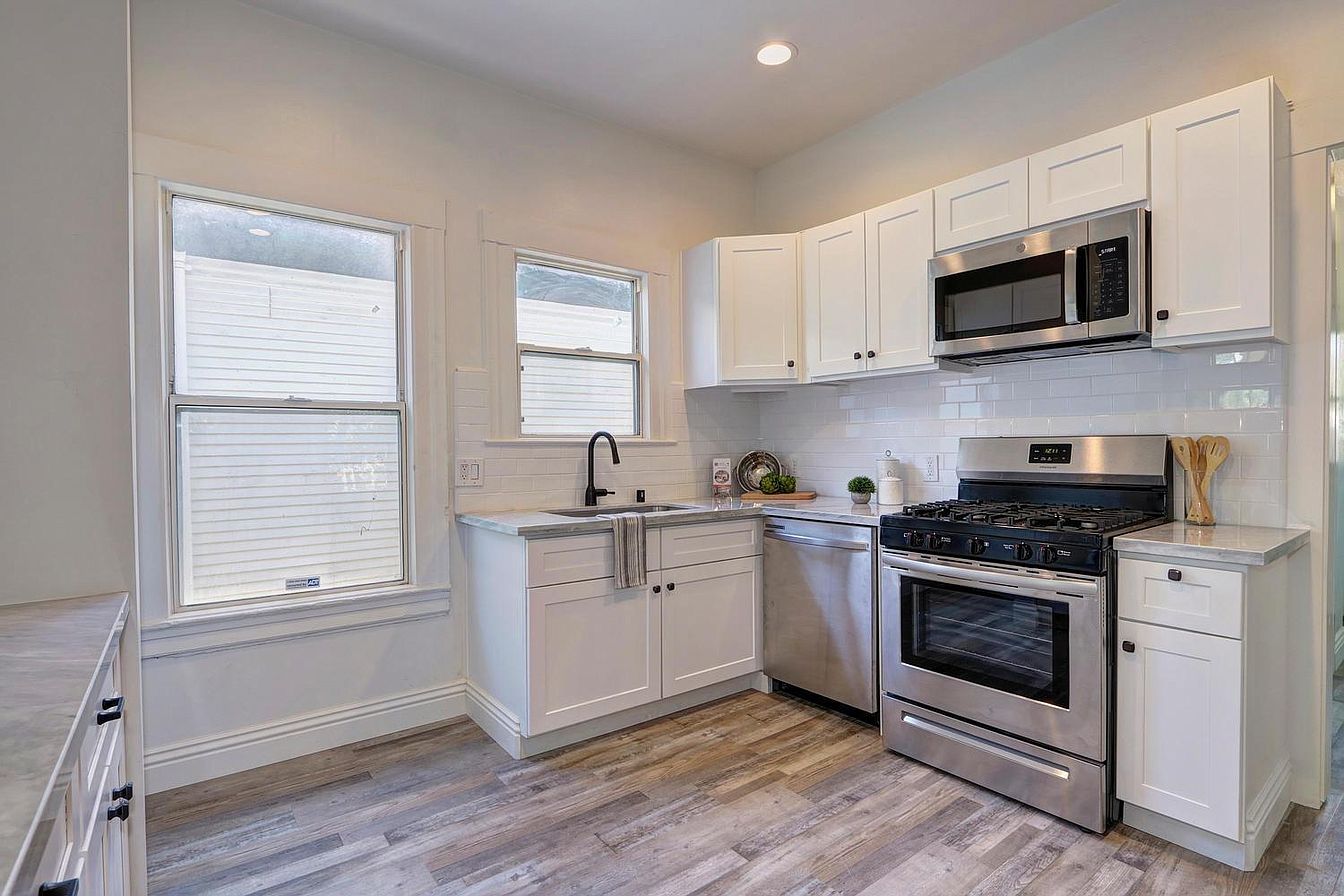 Stunning turn-key bungalow in the up and coming Oak Park area of Sacramento. Exquisite modern farmhouse thoughtfully updated with an abundance of natural light, fresh neutral colors and gorgeous laminate seamlessly throughout the entire home. Kitchen boasts of generous storage, quartz countertops, stainless steel appliances, and white shaker cabinets. Charming master bedroom with a beautiful en-suite is a flawless escape. Convenient indoor laundry leads out to the large fenced outdoor space. Private backyard with mature trees is a clean slate ready to be created into a paradise perfect for entertaining. Centrally located and close to parks, shopping, restaurants, and entertainment. Walking distance to the expansive and beautiful McClatchy Park and desirable Oak Park Farmers Market. This immaculate home is a definite must see! Remodeled/Updtd Desc: Bath 0-5YR, Bed 0-5YR, Kitchen 0-5YR