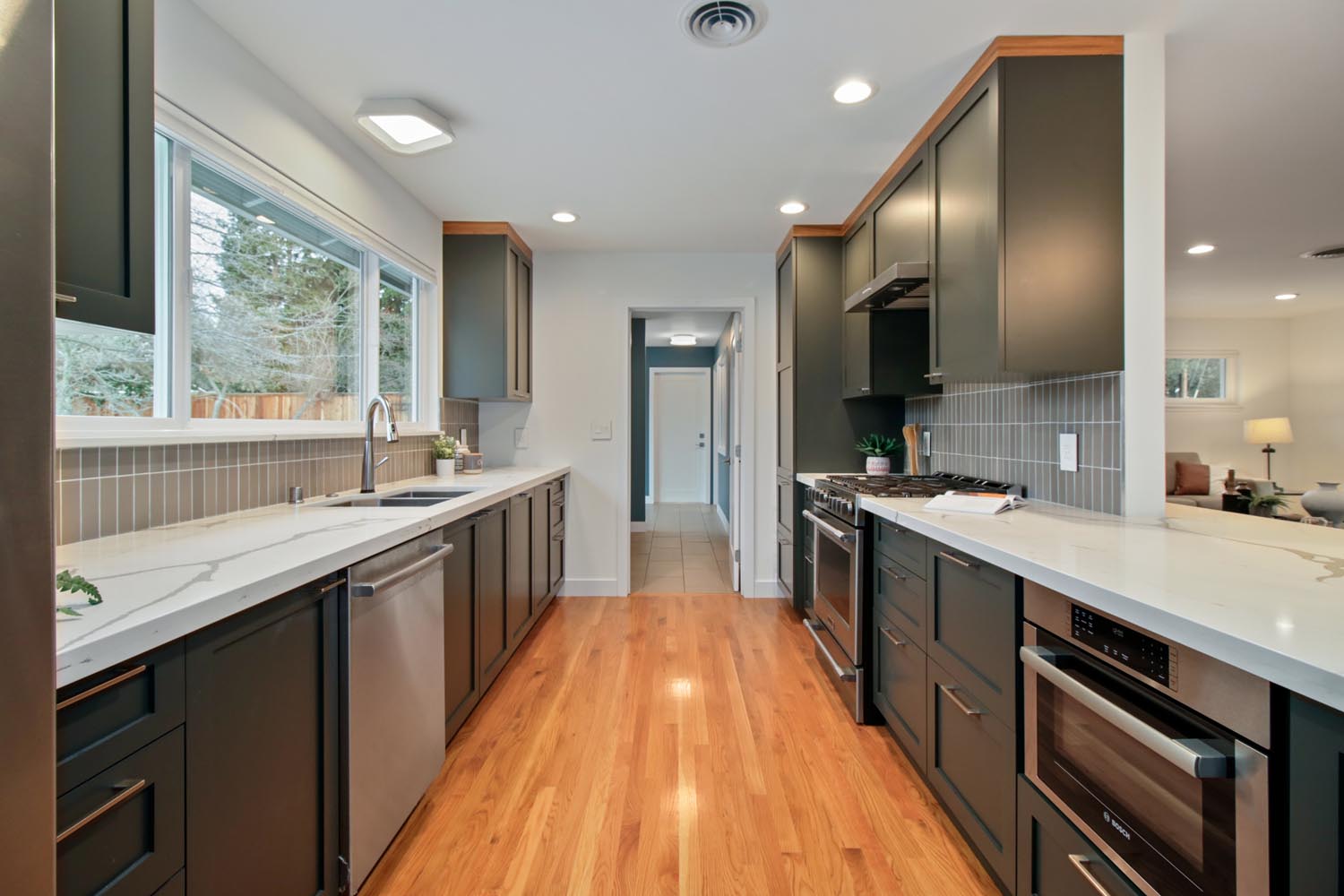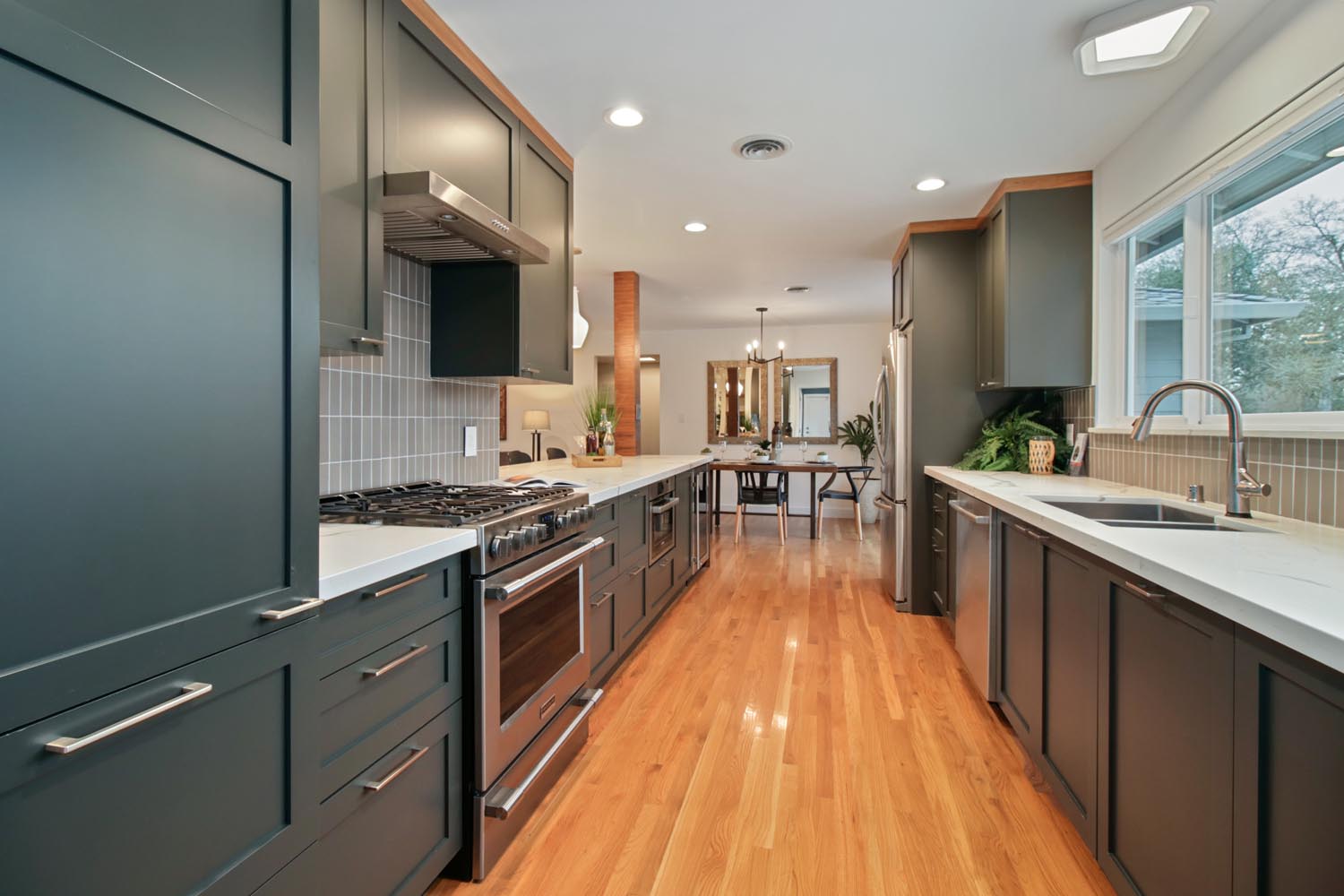 This beautiful home offers life on a spacious 1-acre property surrounded by beautiful oaks. Whether you want to build a farmstead, add a pool, park your RV, or build an ADU, this flat, usable property can accommodate your wishes. Meticulously updated, including freshly painted interiors, smooth walls, & solid white oak flooring. The kitchen features custom painted maple shaker cabinets with walnut accents, stainless steel appliances, & a stylish Heath ceramic tile backsplash, provides a pleasant place to whip up a meal or just take in the view of the back acreage. The bathrooms have been renovated with new shower and floor tile, lighting, fans, & vanities. The exterior of the home has been upgraded with Hardie cement siding, insulation, and fresh exterior paint. New concrete driveway and asphalt side driveway to the back property, as well as a new 7' fencing along the road for added privacy. The outdoor space is perfect for entertaining, with a large concrete back patio, raised garden beds with irrigation, and a water feature with remote control. Waterwise, native, and pollinator friendly landscaping offers pretty views from every window. Don't miss the opportunity to own this beautifully updated home with its impressive features & and serene surroundings!