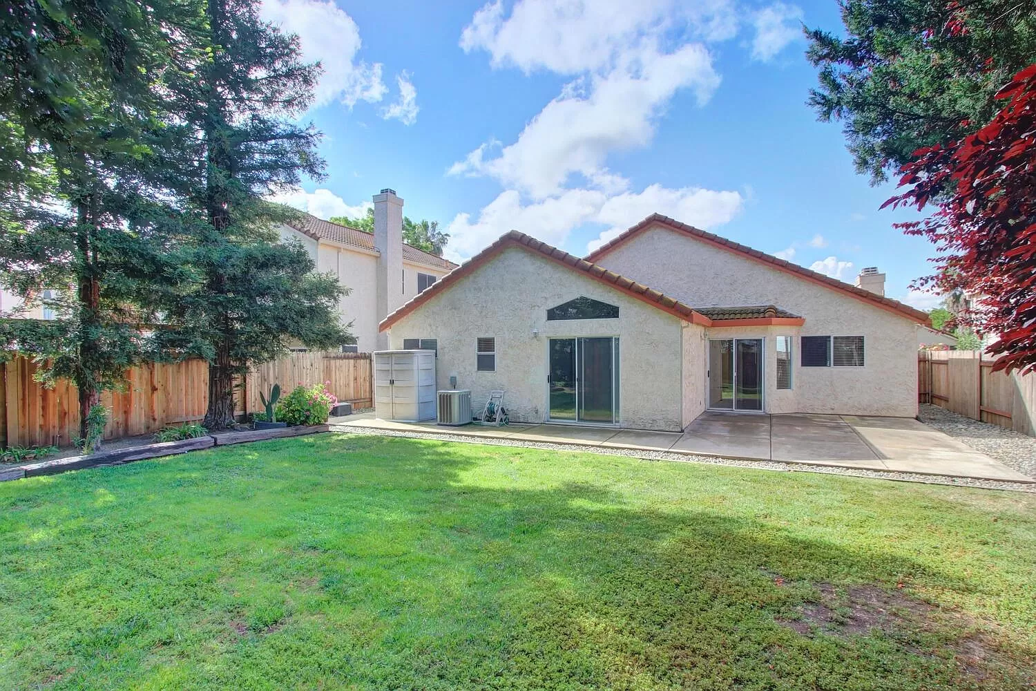 Remarkable and attractive mission-style property with terracotta roof tiles nestled in the North Laguna neighborhood of Elk Grove with no backyard neighbors. Refreshing and clean this traditional home is abounding with copious amounts of natural light, thoughtful open floor plan, large windows, neutral colors and unique vaulted ceiling. Gorgeous entrance opens up into the stunning living room with a cozy fireplace and warm wood flooring. Bright horseshoe kitchen offers an abundance of space for entertaining, has plenty of storage within the beautiful wood cabinets, recessed lighting, gas stovetop and dining nook. Indoor laundry is not only convenient but a must. Cozy master bedroom with an elegant ensuite has an abundance of closet space, double vanity, soaking tube and all the charm. Restore and relax in this sunshine park-like backyard with mature trees offering the utmost privacy and low maintenance landscaping. This turn-key home is a definite must see!